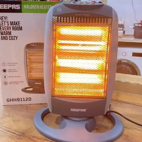 بخاری برقی جیپاس مدل GHH9112 دارای پایه قابل چرخش گرمایش قوی تا حدود 20 متر تنظیمات حرارت 3 حالت ابعاد 49x28x12 سانتیمتر حداکثر توان گرمایشی 1200W وزن 1800 گرم