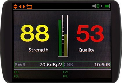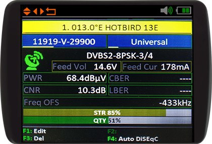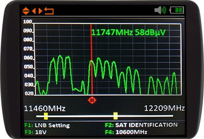 همینطور میزان سیگنال ال ان بی های کواترو (ال ان سی) برای هر چهار قطبیت در باند های فرکانسی بالا و پایین بصورت همزمان نمایش داده می شوند که برای نصب سیستم های مرکزی بسیار کاربردی است.