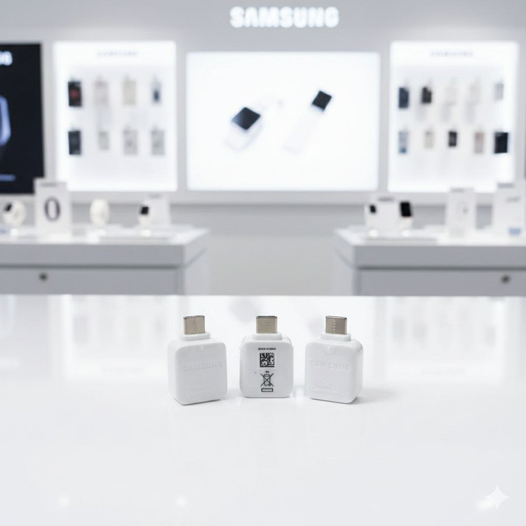 مبدل (Adapter) سامسونگ را نشان میدهد که برای اتصال لوازم جانبی با درگاههای قدیمیتر به گوشیهای جدید استفاده میشوند.