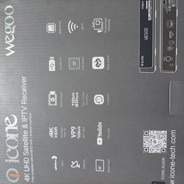 گیرنده تمام عیار آیکون ویگوو icone wegoo فورکی 60 فریم ساخت کره مونتاژ چین مناسب تلویزیون تا 120 اینچ