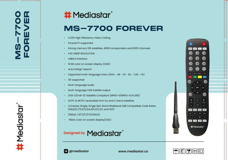 گیرنده مدیا استار 7700 فوراور ورژن ۲ کارتن جدید دارای سخت افزار استاندارد اروپا و پرفروش طی دوسال (اصل) 2025