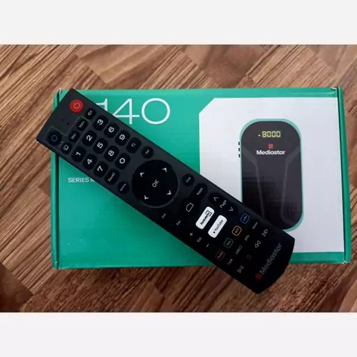 گیرنده اصلی مدیا استار R140 ورژن دو (امارات) با ریموت کنترل جدید (اصل) دو چشم ( براکت نصب پشت تلویزیون) کنترل فابریک مدیا استار دو منو مخصوص اورجینال