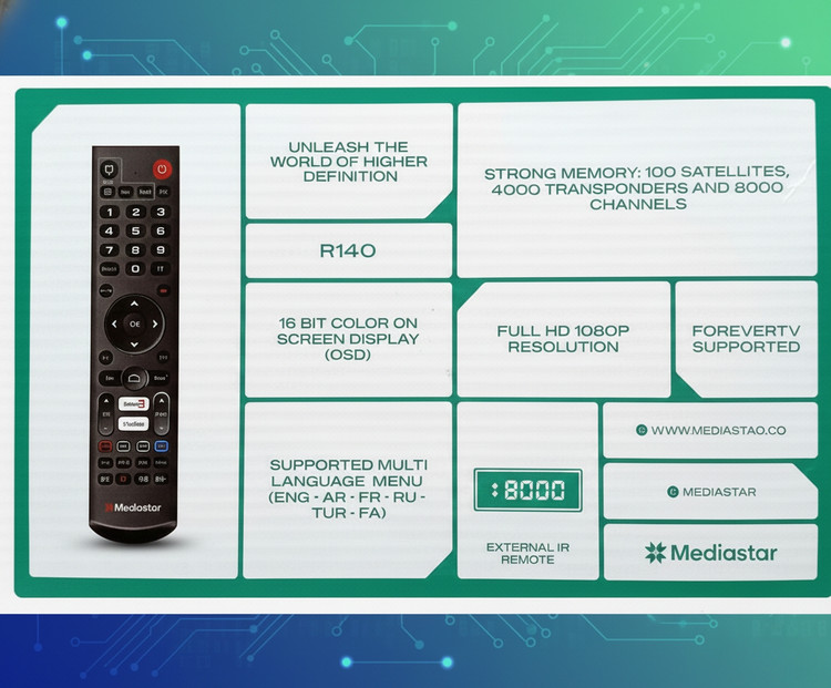 گیرنده اصلی مدیا استار R140 ورژن دو (امارات) وکیوم شده و پلمپ شرکتی دستگاه (پک باز نشده)