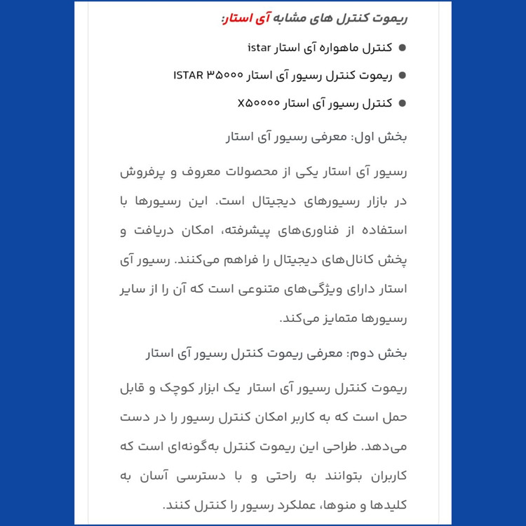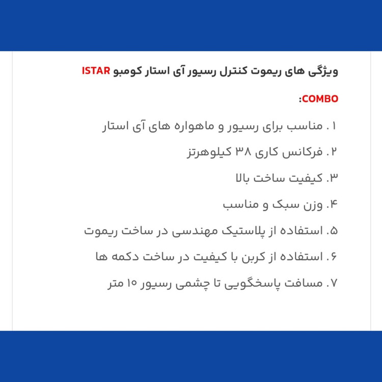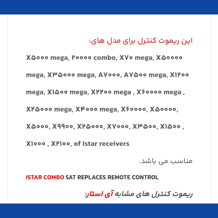 ریموت کنترل گیرنده آی استار مدل کمبو سری x